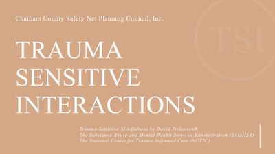 TSI is a 2.5-3-hour evidence-informed training in creating a trauma-sensitive environment. This workshop draws on work and research of the evidence-based course Trauma-Sensitive Mindfulness by David Treleaven® , the Substance Abuse and Mental Health Services Administration (SAMHSA), and the National Center for Trauma-Informed Care (NCTIC).